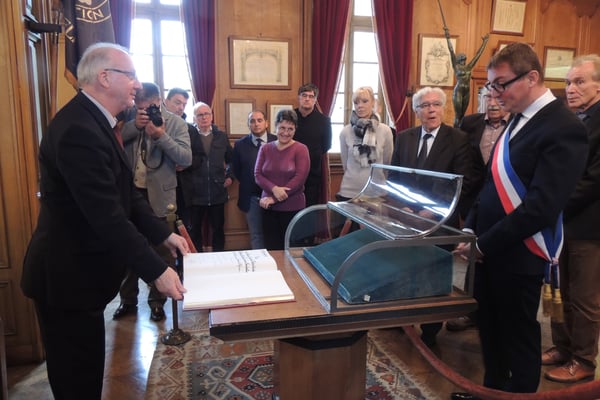 Le dimanche matin, la délégation d’élus a eu l’honneur d’être réçue en mairie de Verdun par Monsieur le Maire Samuel Hazard. Une réception officielle pendant laquelle les élus ont pu visiter les collections privées de la mairie.
