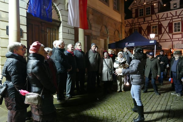 Gleich nach der Ankunft besuchten unsere Gäste den Adventsmarkt. Dort waren die Partnerstädte mit mehreren Ständen vertreten und boten Köstlichkeiten aus ihren Ländern an. Die Stadtverwaltung lud die Gäste im Bürgersaal zu einer deftigen Gulaschsuppe ein. Der allergrößte Teil der Gäste übernachtete bei Brackenheimer Familien.