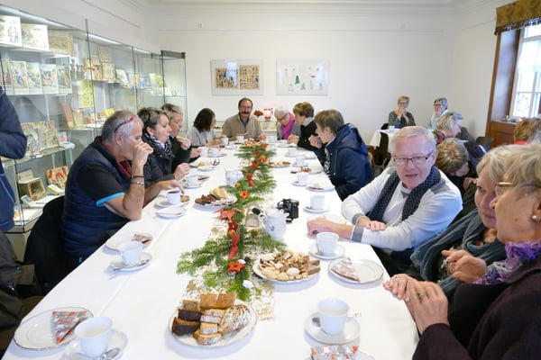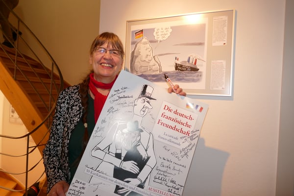 "La Caricade franco-allemande" im Theodor-Heuss-Museum, ökumenischer Gottesdienst in der Stadtkirche, Mittagessen bei den Landfrauen in Botenheim und zum Abschluss: Museums-Caffee im Heimatmuseum.