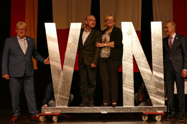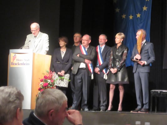 Am Abend kamen alle wieder zusammen, um die große Jubelfeier im Bürgerzentrum zu begehen. Reden, die nachdenklich, fröhlich und hoffnungsvoll stimmten. Musik und Tanzbeiträge, die das Leben feierten und vor allem unsere Jugendlichen, die sich leidenschaftlich für eine bessere Zukunft in Europa aussprachen, machten den Abend zu einem würdigen Ereignis. Die namentlich geehrten Freunde, die über viele Jahre und Jahrzehnte zum Gelingen der Partnerschaft beigetragen haben und die unser "Netzwerk für Europa" Knoten für Knoten geknüpft haben, dürfen nicht vergessen werden.