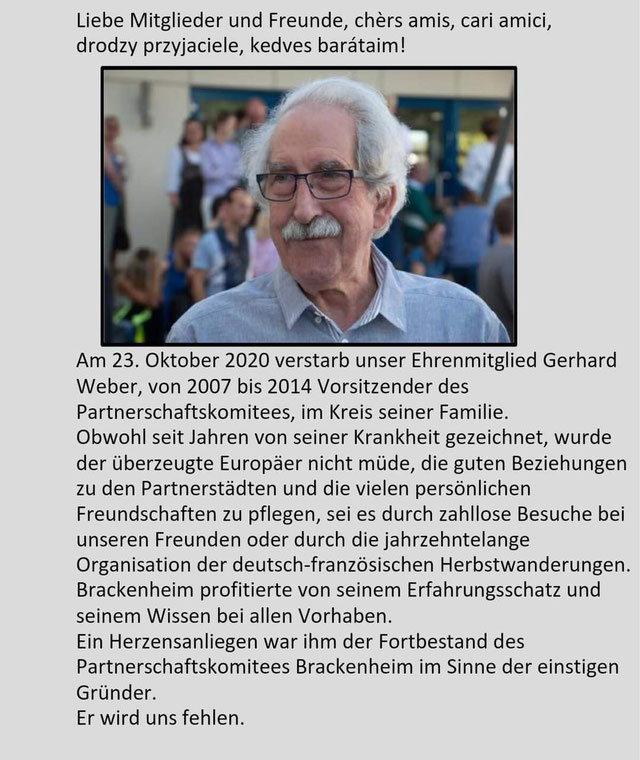 Ehrenmitglied Gerhard Weber verstorben