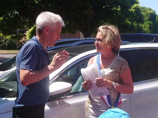 Wie aus dem Rathaus berichtet wurde, war man ganz „touché“, gerührt, und natürlich sehr erfreut über den außergewöhnlichen Kurierdienst aus der Partnerstadt in der derzeitigen Situation. Und Günter Glatter war sehr zufrieden, dass die Fahrt so problemlos verlaufen war und positiv überrascht, ganz offiziell von Madame la maire - mit Schärpe - empfangen zu werden. Das Journal schrieb sogar: « Quand on aime, on ne compte pas. » Wenn man liebt, zählt man nicht. (Die Kilometer.)