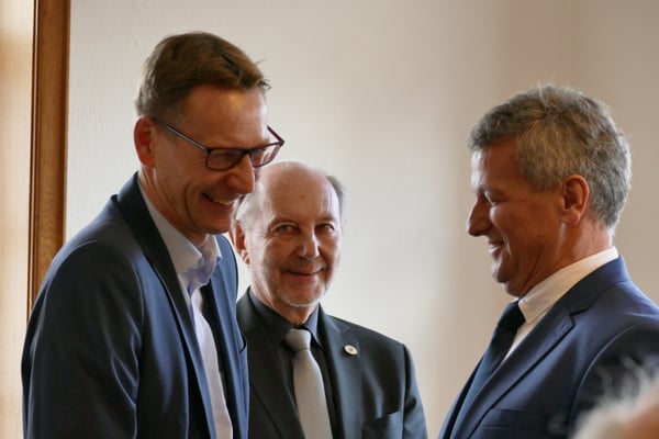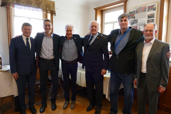 Bürgermeister und Bürgermeister a.D.: Wiesław Olszewski, Thomas Czaszar, Rolf Kieser, Gérard Voisin, Béla Kovács, Peter Oppel.