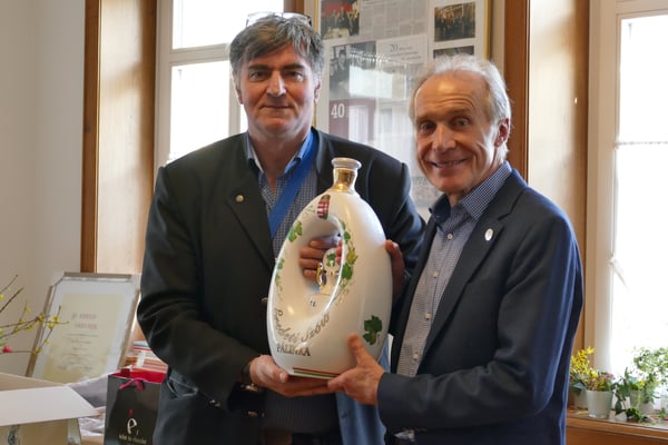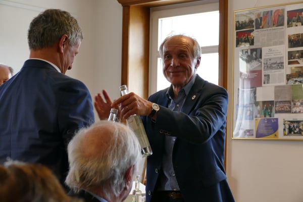 Auf Rolf Kieser wartete nach der Ernennung zum Ehrenbürger Brackenheims am Abend zuvor, dem zweiten nach Karl Seither, noch eine weitere Auszeichnung. Peter Jung, stellvertretender Vorsitzender, kürte den „Alt-Bürgermeister“ zum Ehrenmitglied in Anerkennung seiner steten Unterstützung des Partnerschaftskomitees. Außerdem ist der überzeugte Europäer Kieser seit Jahrzehnten mit vielen Bürgern aus den Partnerstädten befreundet.