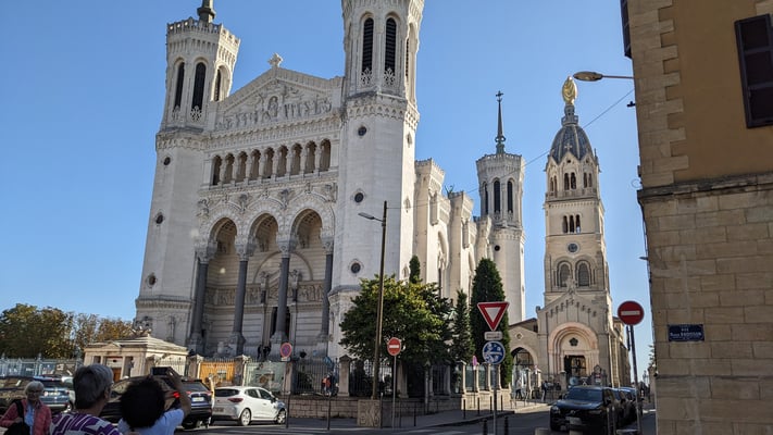 Der Samstag hielt dann einiges bereit: Um 8:30 Uhr fuhren alle Delegationen, begleitet von einigen französischen Gastgebern, nach Lyon. Die Besichtigung der Notre-Dame de Fourvière, einer Wallfahrtskirche, die hoch über Lyon thront, brachte alle Anwesenden zum Staunen. Anschließend durften sich die Teilnehmer über eine kurze Fahrt in der Standseilbahn runter in die Stadt freuen. Nachdem das für die Region typische Mittagessen mit Genuss verspeist wurde, ging es weiter in das "musée des confluences", das den Schwerpunkt auf Naturwissenschaften legt. Ein spannendes Gebäude von außen und verschiedene spannende Ausstellungen im Inneren warteten hierbei auf die Besucher. Mit der Sonne um die Wette strahlten alle Teilnehmer am Ende des Tages, nachdem bei hervorragendem Wetter noch im Rahmen eines kurzer Abstechers der Zusammenfluss von Rhône und Sâone bestaunt werden konnte.