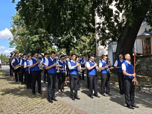 Der Samstag beginnt mit einem Gottesdienst, den die Tanz- und Gesangsgruppe Miedarzanie in ihren farbenprächtigen Trachten mitgestaltet. In einer Prozession, angeführt vom Orchester Tarnogórska, geht es im Anschluss zum Festplatz.